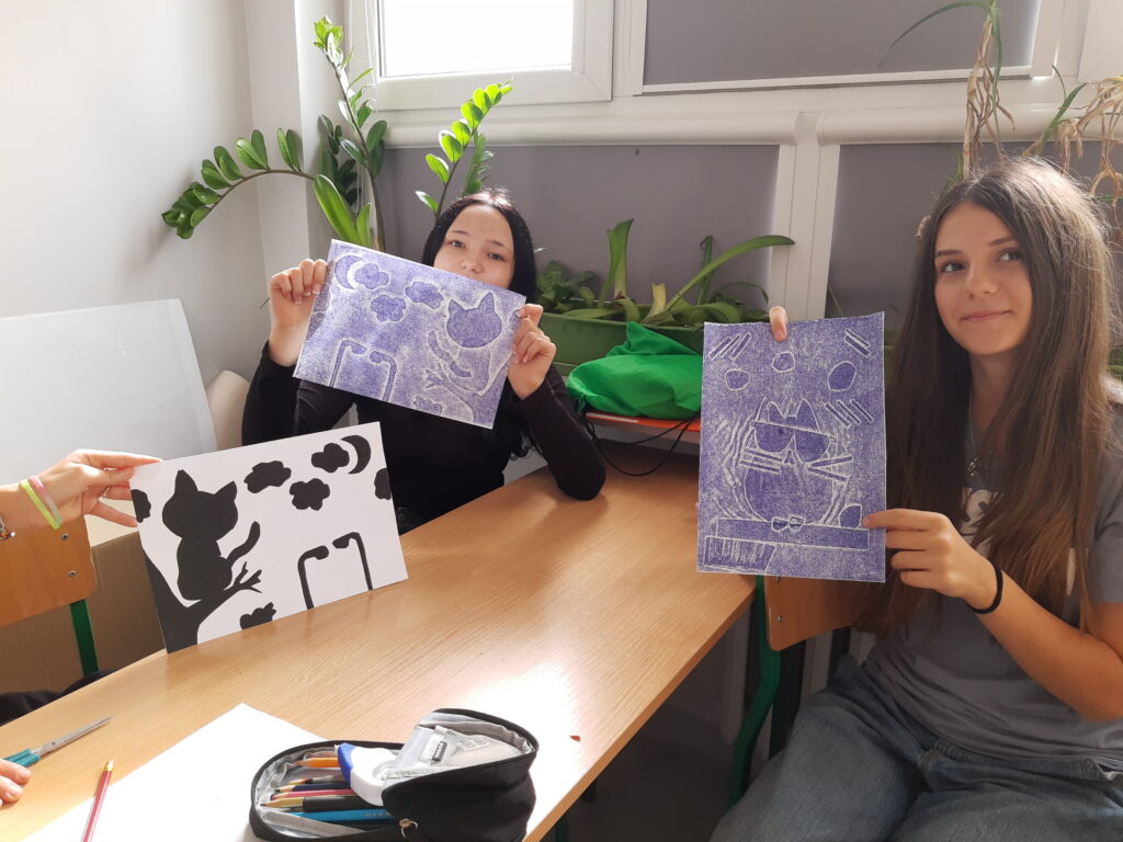 Na lekcjach plastyki uczniowie klas szóstych stworzyli przepiękne kalkografie. Do wykonania swoich prac wykorzystali kalki ołówkowe, niegdyś bardzo popularne, a obecnie prawie zapomniane.