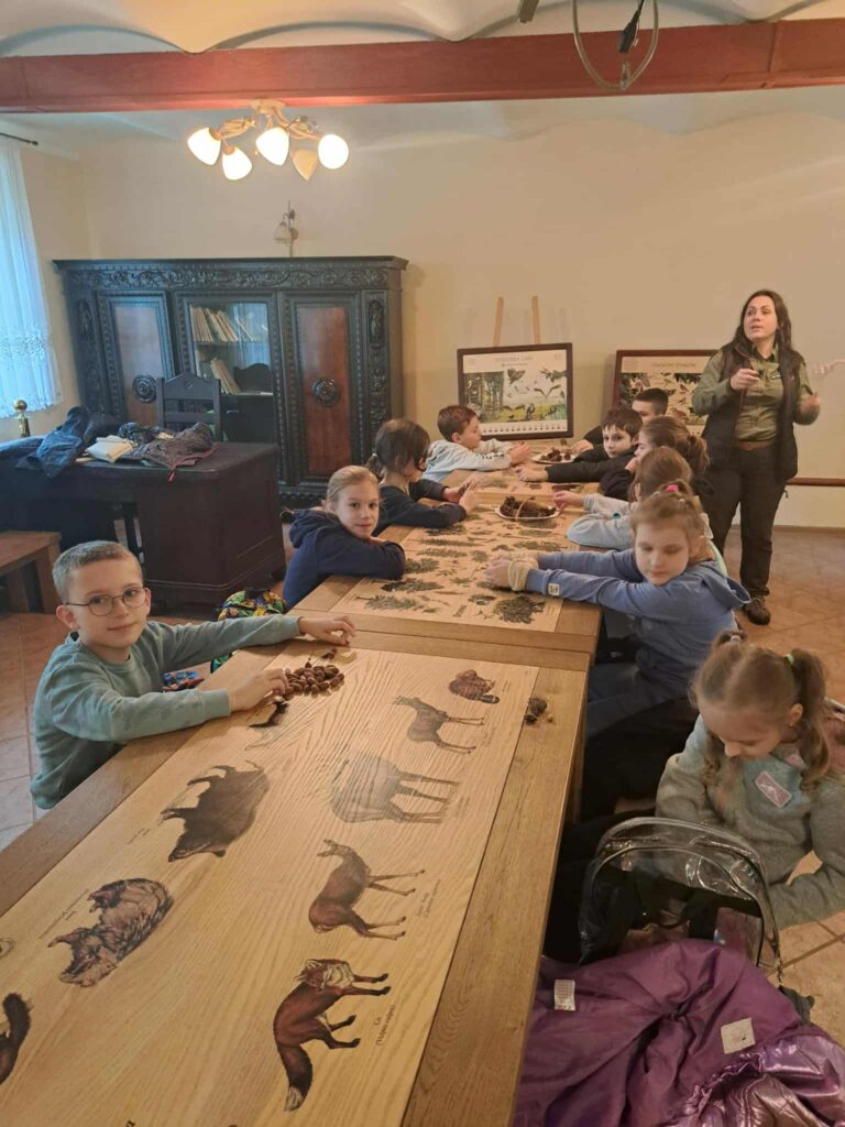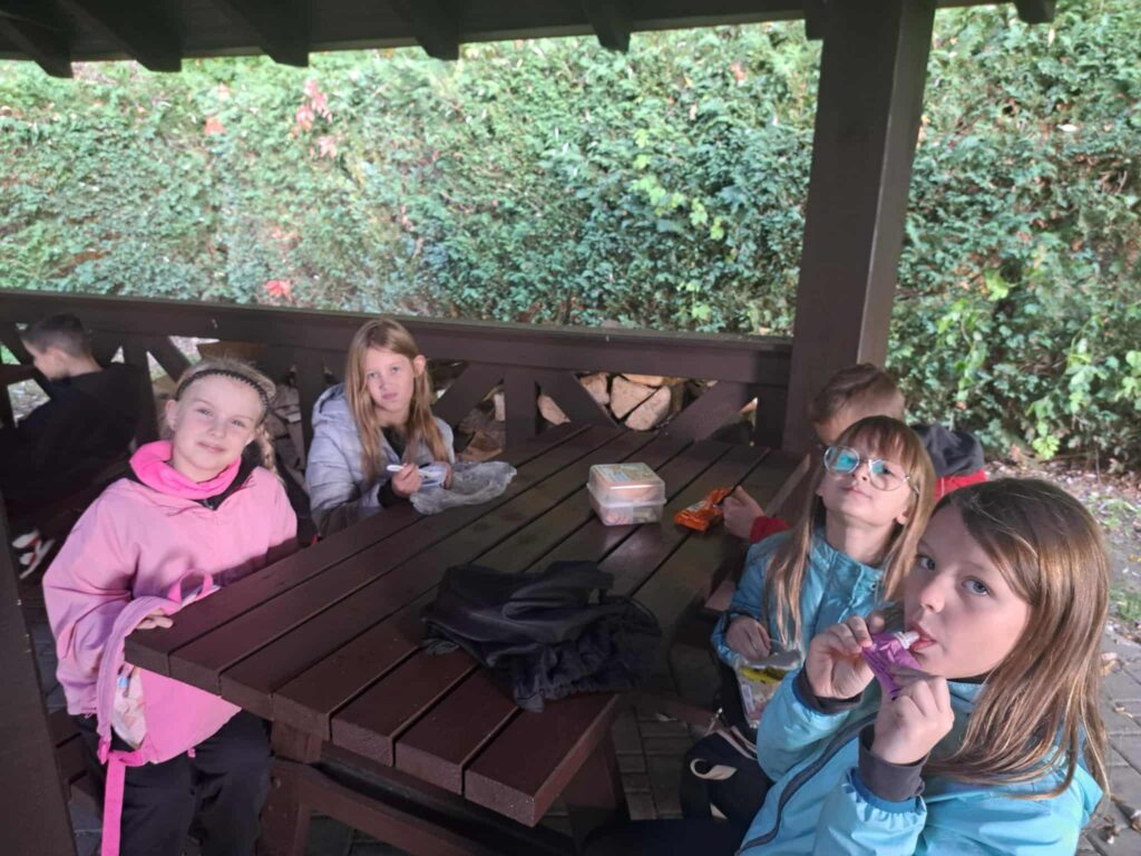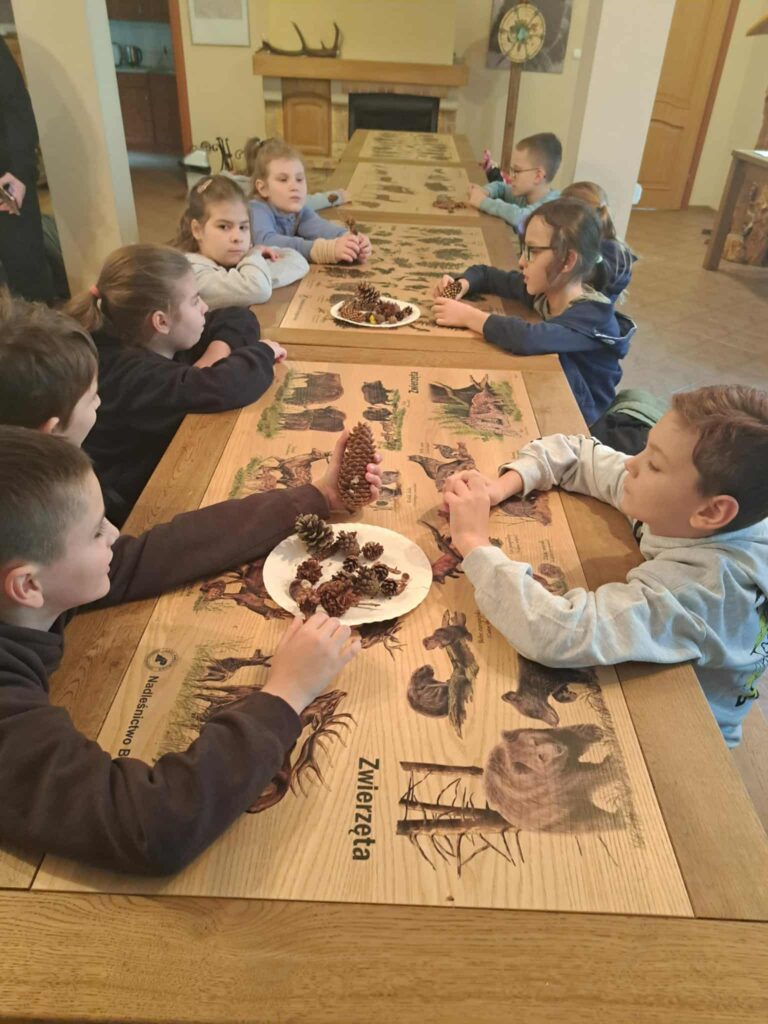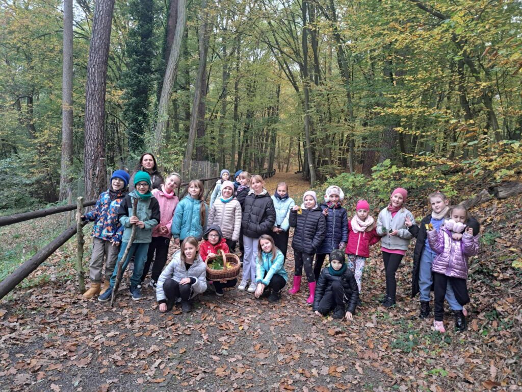 Jesień to niezwykły czas w lesie – czas barw, zapachów i cichego przygotowania przyrody do zimowego odpoczynku. Właśnie w takiej jesiennej scenerii uczniowie klasy 3 a pod opieką wychowawczyni, pani Anny Jańczak, wyruszyli na wycieczkę do pobliskiego Nadleśnictwa Bogdaniec, by poznać tajemnice leśnego świata. Podczas zajęć edukacyjnych dzieci odkrywały, jak zbudowany jest las – od mchu i paproci w runie, przez krzewy i młode drzewka w podszycie, aż po potężne korony sosen, świerków, klonów i dębów tworzące najwyższą warstwę. Uczniowie uczyli się rozpoznawać gatunki drzew po kształcie liści i korze, a także poznali mieszkańców lasu – wiewiórki, sarny, dzięcioły i wiele innych zwierząt, które na co dzień kryją się wśród drzew. Zajęciom na łonie natury sprzyjała przepiękna, polska złota jesień.