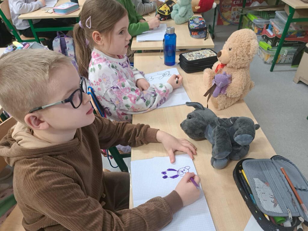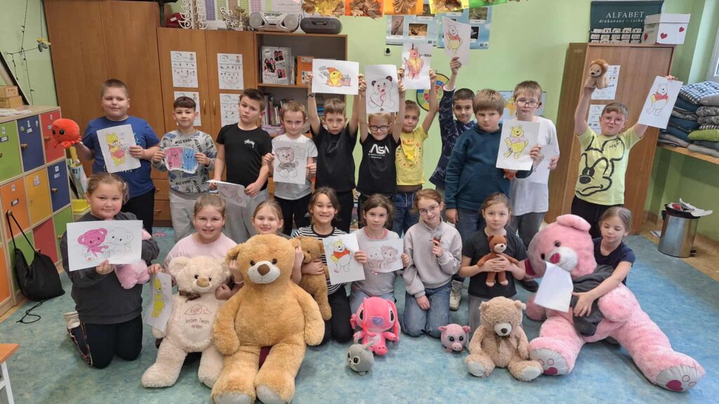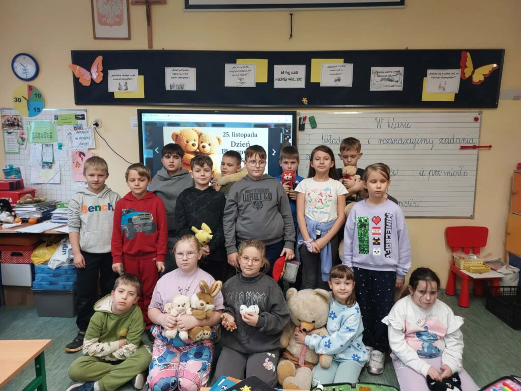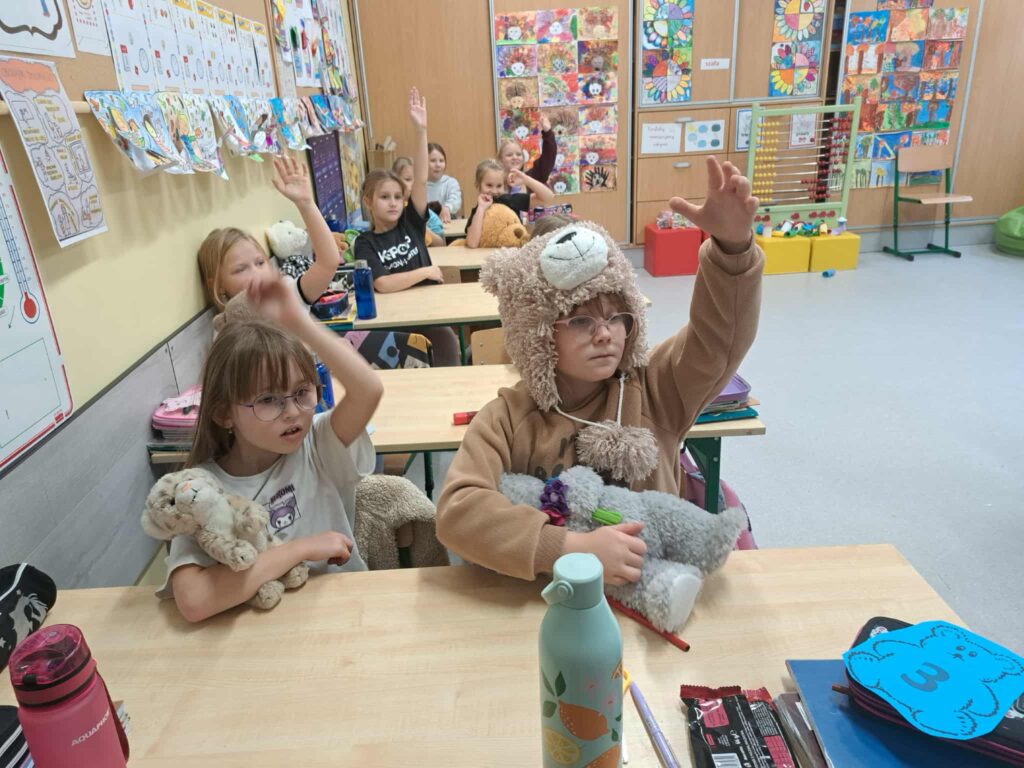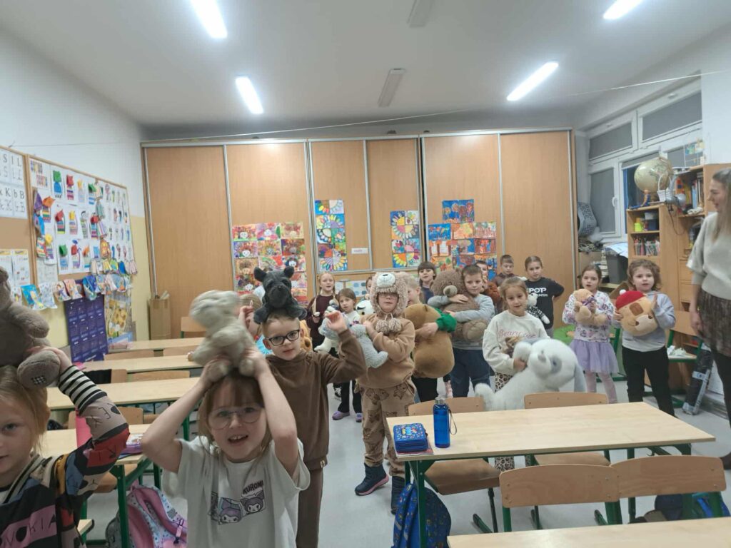 Zajęcia z pluszowymi misiami były nie tylko pełne radości, ale również sprzyjały nauce i wspólnej zabawie. Towarzystwo pluszaków sprawiło, że dzień stał się wyjątkowy. Już teraz cieszymy się na kolejne obchody tego święta i z radością zaprosimy nasze misie do szkoły także w przyszłym roku.