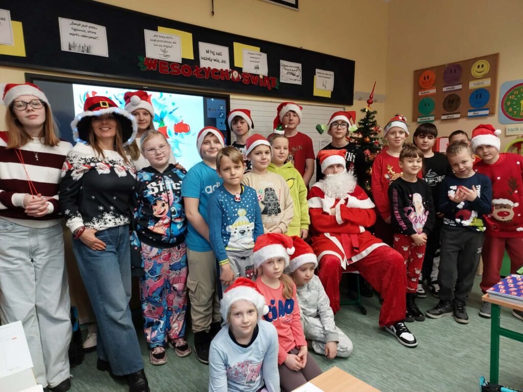 W naszej szkole w piątek 5 grudnia już od rana czuć było wyjątkową atmosferę. Uczniowie pojawili się w czerwonych czapkach lub świątecznych opaskach i z dobrym humorem, który szybko udzielał się wszystkim dookoła.
