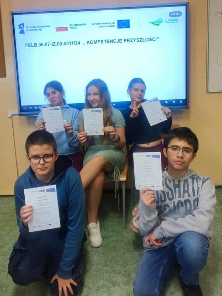 Projekt „Kompetencje Przyszłości” współfinansowany jest ze środków Unii Europejskiej w ramach Europejskiego Funduszu Społecznego Plus w zakresie Zintegrowanych Inwestycji Terytorialnych Miejskiego Obszaru Funkcjonalnego Gorzowa Wielkopolskiego (MOF), Priorytet 6. Fundusze Europejskie na wsparcie obywateli, cel szczegółowy f, typ projektu II kompetentny i odkrywczy uczeń, realizowanego przez ZIT Gorzów Wielkopolski w ramach Programu Fundusze Europejskie dla Lubuskiego 2021 – 2027, w zakresie dostępności i jakości kształcenia ogólnego.